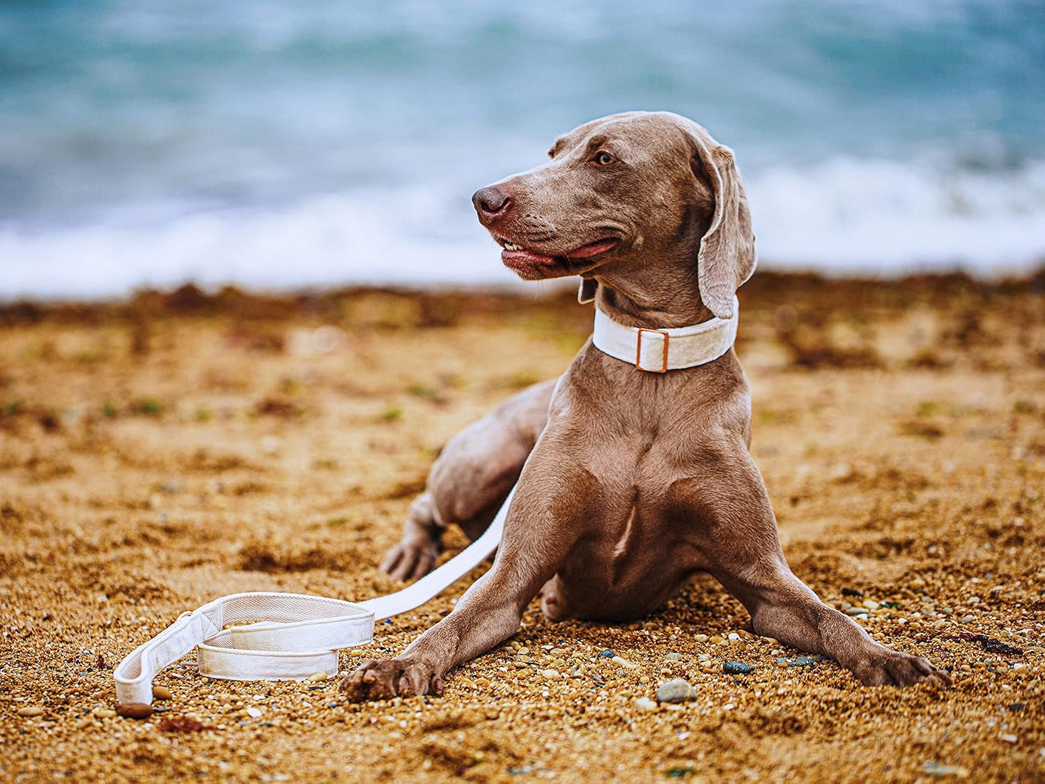 Dog Collar and Leash Set, Soft White Velvet Dog Collar and Leash, Adjustable Collars for Dogs